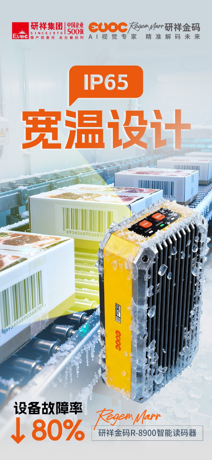 BB贝博艾弗森R-8900智能读码器具备IP65防护等级+宽温设计(-25℃~55℃),大大降低极端工况下的故障风险,产品平均无故障运行时间(MTBF)超4万小时。